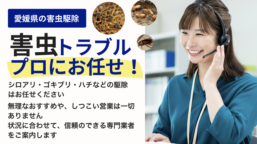 害虫駆除の相談窓口では、「愛媛県」の以下の地域を対象に、害虫駆除の相談を受け付けております。