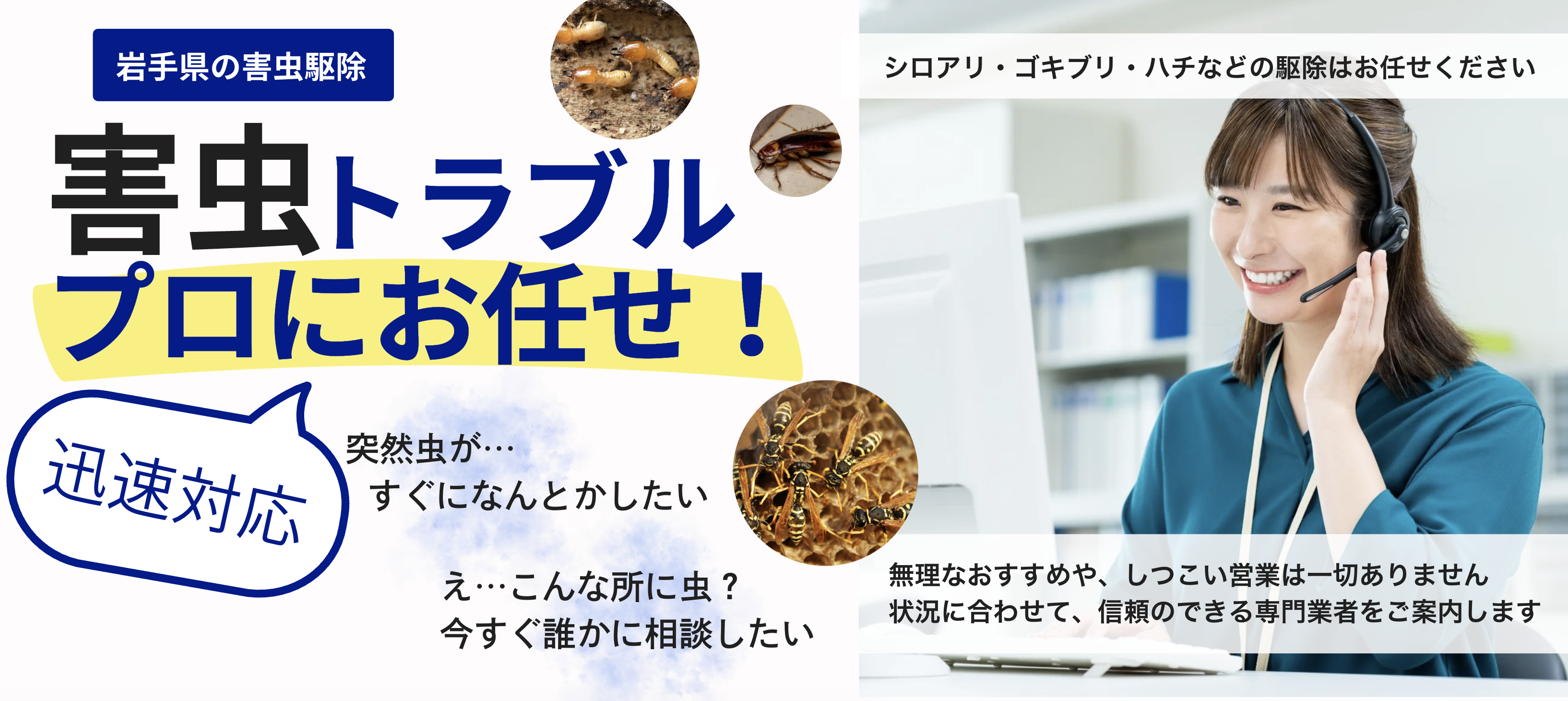 害虫駆除の相談窓口では、「岩手県」の以下の地域を対象に、害虫駆除の相談を受け付けております。