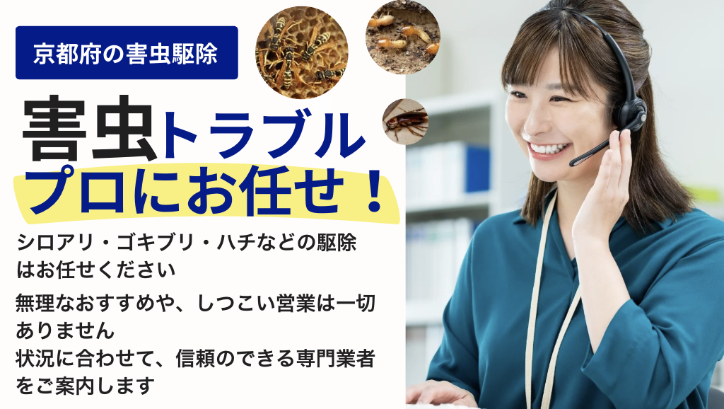 害虫駆除の相談窓口では、「京都府」の以下の地域を対象に、害虫駆除の相談を受け付けております。
