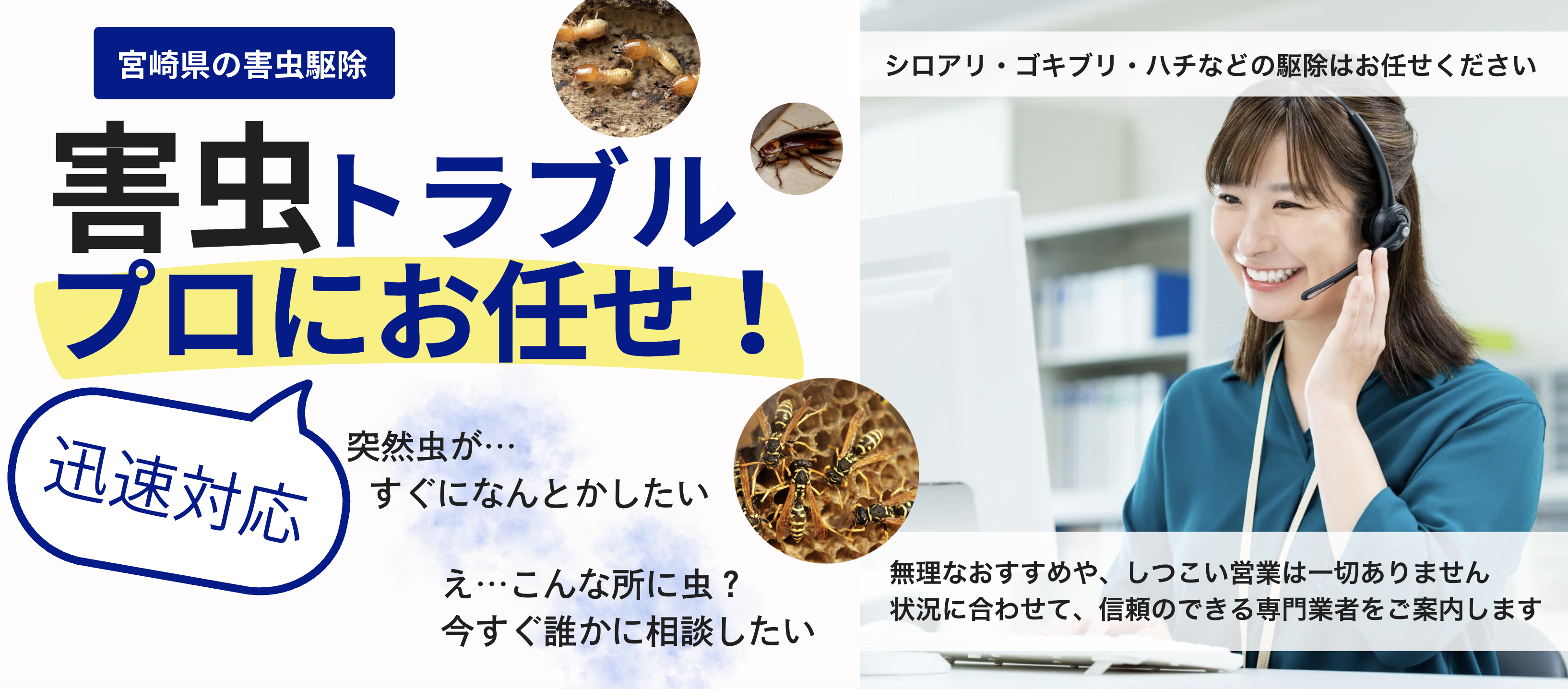 害虫駆除の相談窓口では、「宮崎県」の以下の地域を対象に、害虫駆除の相談を受け付けております。