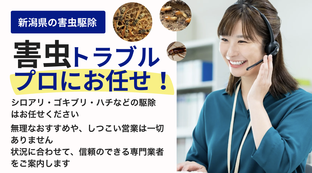 害虫駆除の相談窓口では、「新潟県」の以下の地域を対象に、害虫駆除の相談を受け付けております。
