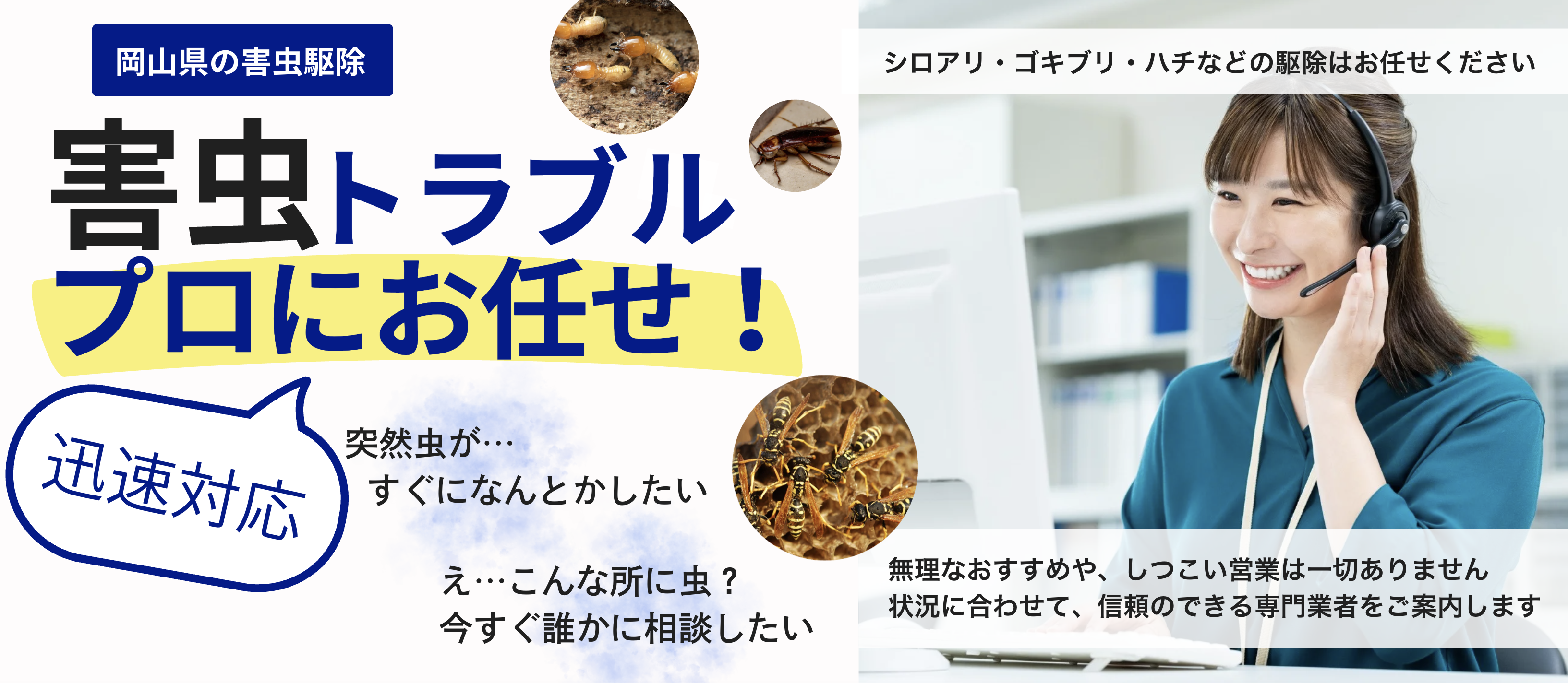 害虫トラブルは、判断が難しく、不安になりやすいものです。私たちは、不安をあおるのではなく、判断を整理する窓口でありたいと考えています。