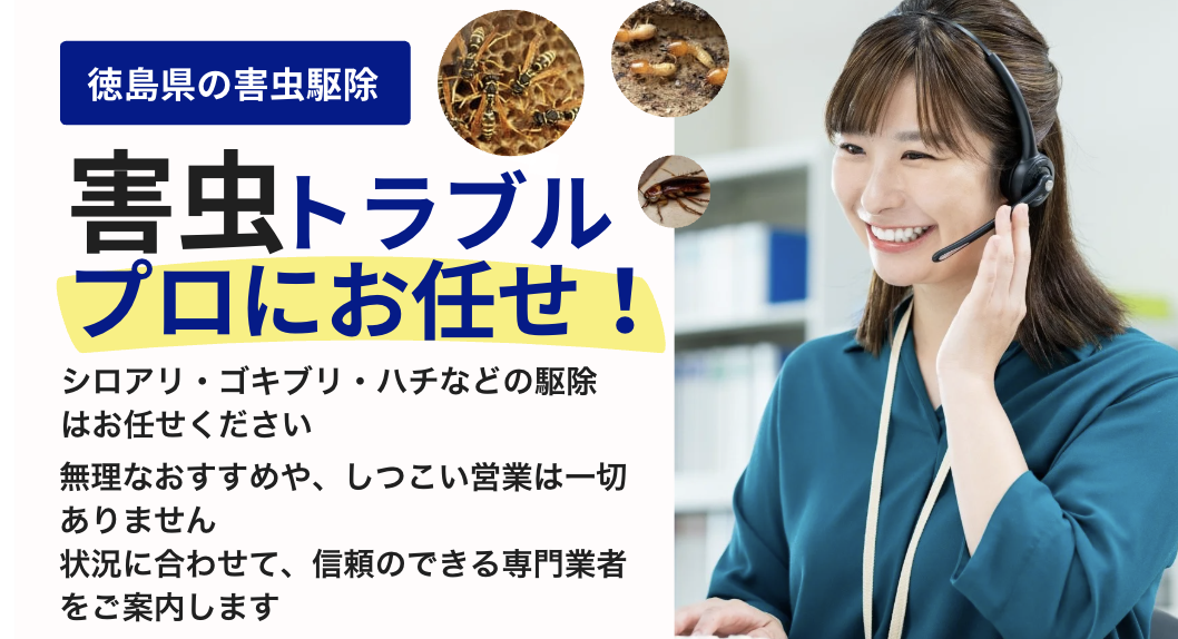 害虫駆除の相談窓口では、「徳島県」の以下の地域を対象に、害虫駆除の相談を受け付けております。